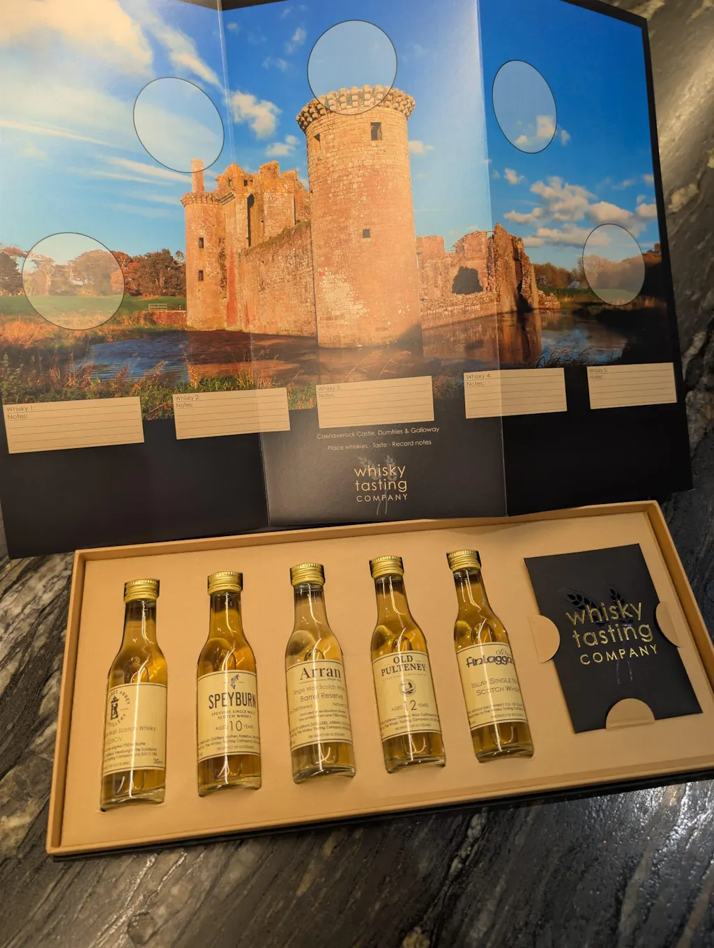 A beautifully-presented whisky gift subscription delivered to your door - we send 4 sets throughout the year (every 3 months), each containing 5 single malt / artisan whiskies, complete with individual tasting cards and a whisky tasting mat - the perfect place to arrange your whisky tasting and to record your own personal notes.