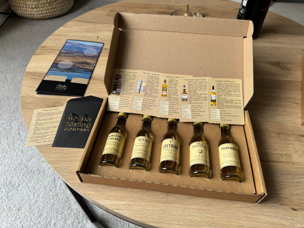 The Scotch whiskies are presented in a Whisky Tasting Company branded box* and includes individual tasting cards presented in a luxury branded envelope as a keepsake for future reference.